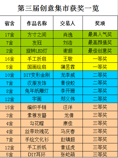 附:第三届创意集市获奖一览表
