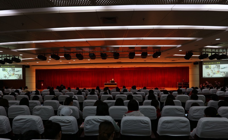 2017年10月26日下午,外语系曾晓俊副教授在图书馆三楼会议厅为我校师生带来了一场“人工智能,机器还是人”的精彩讲座,讲座由外语系副主任苏玉仙教授主持,全校师生三百余人聆听了讲座。