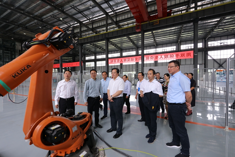 会后,省发改委、省经信委、省教育厅领导以及联盟成员单位代表参观了学校的工业机器人应用创新中心。(文/图:党委宣传部)