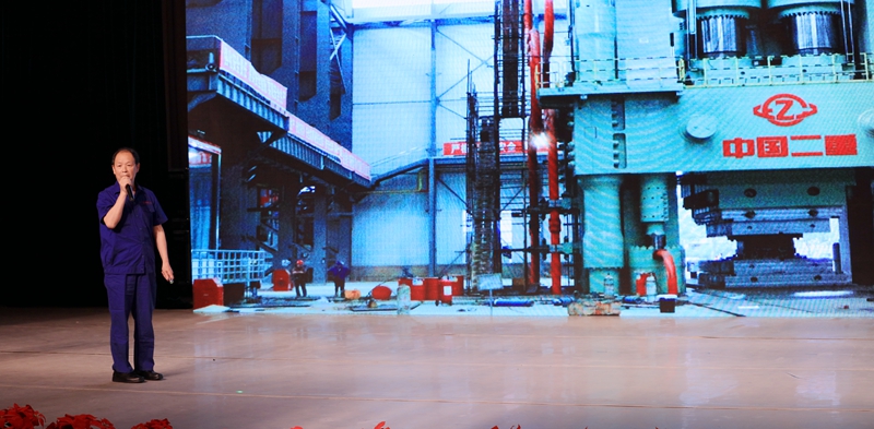 胡应华:这个问题也提的太好了,怎么说呢,我从进厂到现在对家人的陪伴肯定是很少的。我可以和同学们说,我在进厂的时候曾经三天两夜在现场没有回家,现在同学们你可能做不到的,三天两夜,我就坐在车间这个床座旁边打着地铺,这是第一个。第二个,我的家庭,我的家里我是一个独儿子,在我父亲生重病的时候,这是在我一生当中最大的,当时我们厂里,正好有一台合资产品,也是大连和日本合作的第一台315热模锻,厂里急着要出厂这几套产品,马上要叫我回厂,因为我是当时的代办人,所以我就同我父亲谈了将近半个小时,我父亲不愿意我走,我也看出来了我父亲就在这几天肯定是不行了。但是,为了这台产品,我非常惭愧,等我把这台产品干完(完成)以后,再打电话回去,我父亲已经去世了,所以这件事对我是在心里面永远也忘不掉。还有我的家人我的女儿她读书的时候我没有办法去关心她,我爱人在医院上班,又要倒夜班。那是没办法,因为我们二重工作上有一个特点,那个活一来(时间)就(工期)很紧,所以说很多时候只能工作,舍掉家庭,如果我不舍掉家庭,我没有今天,这是我真心话。没有家庭的支持我也没有今天。我相信同学们你们今后会感受到的,我只能这样说,两样其中肯定要丢掉一样,所以说我只能对家庭抱歉的说一声对不起,但是他们很理解我很支持我,我借这个机会我要谢谢我的家人,也要谢谢我的同事们他们的家人,对这些常年在工作岗位上常年加班加点的同志们的家属问个好,谢谢这个同学提出的这个问题。