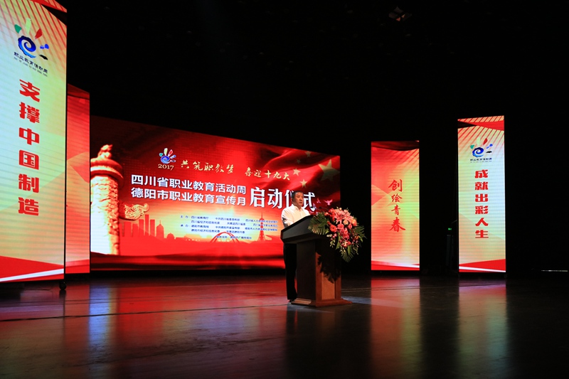 2017年5月7日,2017年四川省职业教育活动周暨德阳市职业教育宣传月在德阳市拉开帷幕,来自全省100多所中高职院校在启动仪式现场以展板和现场才艺表演等方式向中小学校师生、行业企业、社区居民等社会各界汇报展示职业院校教育教学成果。省教育厅副巡视员王嵩建出席启动仪式并讲话。