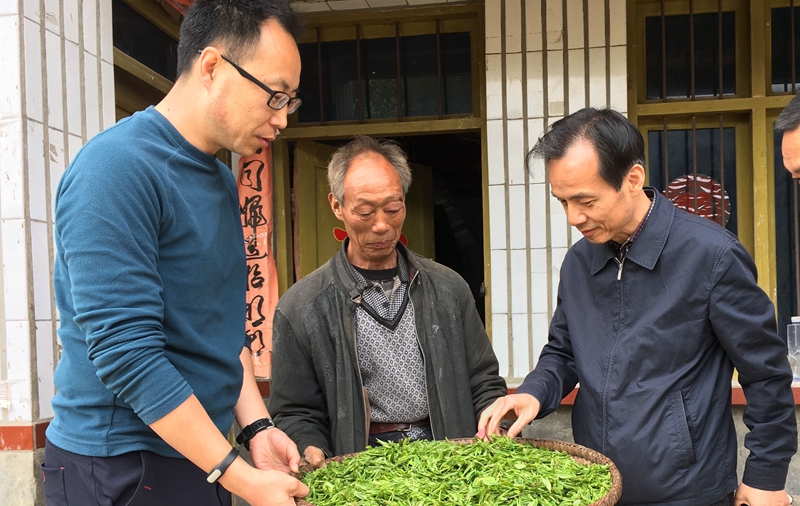 当来到贫困户老村长张建发家时,这个67岁的老人拿出新采的茶叶给大家看,他在积极准备开办农家乐的同时,利用空余时间,白天采茶,晚上炒茶。目前虽然他家现有条件离开办农家乐还有一定差距,但是督导组一行被老村长不等不靠、自力更生、奋发图强、乐观上进的精神感动着,督导组纷纷帮他出主意、想办法,帮助他解决在脱贫过程中遇到的困难。