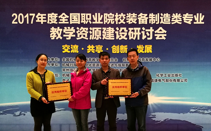 2017年4月7至9日,在江苏省常州市举办的“2017年度全国职业院校装备制造类专业教学资源建设研讨会”上,我校教师在全国微课比赛和机械行业职业教育精品教材遴选活动中获奖。