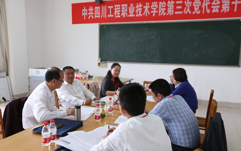 2017年4月17日下午14点40分,中国共产党四川工程职业技术学院第三次代表大会第二次分团会议在各代表团会议室进行,会议由各代表团团长主持。