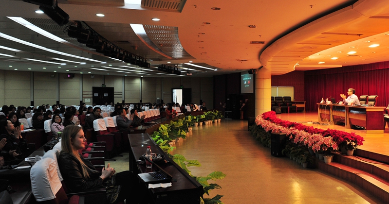 2017年4月11日下午三点,学校新聘任的三名外籍教师Klara Lindnerova、Sam Roche和Adam McLemore应邀在图书馆三楼学术厅面向全校师生举办了一场关于欧美文化的学习讲座。 本次讲座以“欧美文化之旅”为主题,内容丰富翔实,视野开阔。三名外籍教师分别来自捷克、爱尔兰和美国,他们从不同的视角带大家领略了欧美文化的隽永与魅力。讲座内涵丰富、精彩纷呈、气氛热烈。讲座结束后,听众们纷纷表示受益匪浅,并和外教一起来到英语角继续展开对欧美文化的讨论。(文/外语系 图/宣传部)