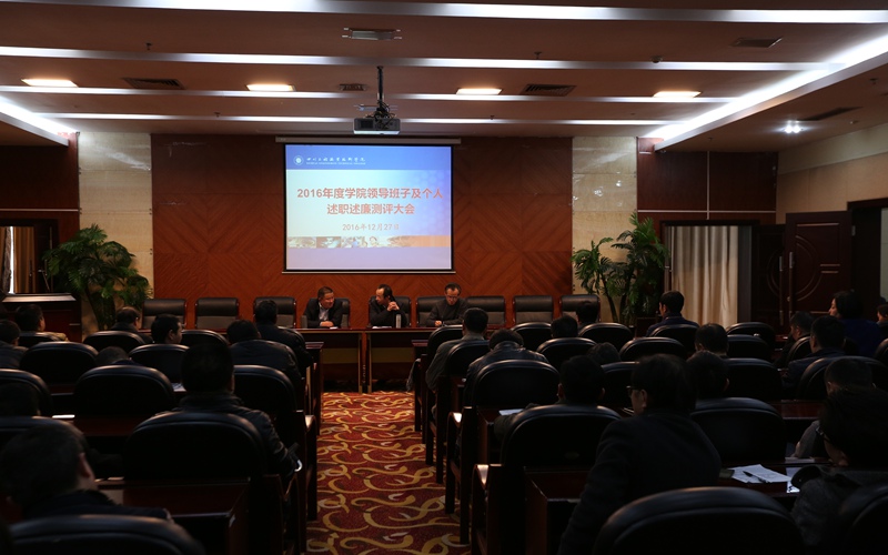 党委书记司徒渝同志进行了党委书记抓党建工作的述职、领导班子落实党风廉政建设责任制的情况汇报、领导班子选人用人的工作汇报、领导班子年度述职述廉以及司徒渝同志个人的述职述廉,党委副书记、院长李登万,党委副书记、副院长杨跃,副院长贺文佳、徐诗勤、倪波,纪委书记郑辅春,副院长肖峰、郭杰先后述职述廉。之后,全体与会人员高度认真负责地进行了党委书记抓党建的测评、领导班子及个人年度考核的测评、领导班子及成员落实党风廉政建设责任制及廉洁从政(业)情况满意度测评、选人用人工作测评和新选拔任用干部测评。
