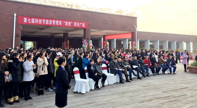 2016年11月26日上午9点,旅游管理系第七届科技节“双创”周末广场在南校区旅游实训中心三楼露台隆重举行。学院科研处、学生处、院团委、创新创业教育指导中心等部门的领导亲临指导,旅游管理系全体师生参加了本次活动。