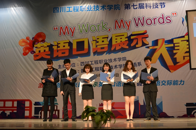 11月29日晚,由外语系承办的学校第七届科技节“My Work,My Words”英语口语展示大赛决赛在二教演艺厅盛大举行。校党委副书记杨跃,学校办公室、外事办、科研处、教务处、车辆工程系、旅游管理系、经济管理系、建筑工程系等部门领导出席并观看比赛。