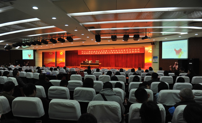 2016年11月8日下午,第七届科技节专题学术讲座在图书馆三楼多功能会议厅正式开讲。成都物联网产业联盟创业导师、成都卡德智能科技有限公司总经理周俊为我校师生作了一场精彩的“大数据中看物联网”讲座。我校部分教师及2016级物联网专业、软件专业、网络专业、电子信息专业学生参加了本次讲座。