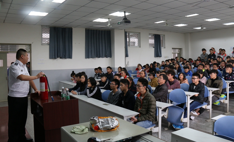 111,我院正式启动以“消除火灾隐患、共建平安校园”为主题的“119”消防宣传月活动。114,完成学院消防安全标语和展板的张贴与摆放。11814时,在三教3A207教室,学院宿管会、图馆会及学院治保会全体成员共计160余人参加了由成都政安消防培训中心李良伟专职教官主讲的消防知识培训。