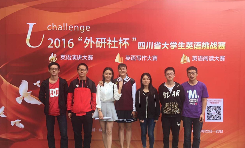 2016“外研社杯”四川省大学生英语挑战赛,是四川省教育厅公布的2016年省级大学生竞赛项目之一,由“英语演讲大赛”、“英语写作大赛”和“英语阅读大赛”三项赛事共同组成,目前已成为全省外语类参赛人数最多、规模最大、水平最高的赛事之一。三项大赛以高远的立意和创新的理念,汇聚全省本、专科优秀学子,竞技英语表达与沟通艺术。同一赛场,三个舞台,既各具特色,又互促互进,为全省大学生提供展示外语能力、沟通能力与思辨能力的综合平台。(文/图 外语系 徐阳平)
