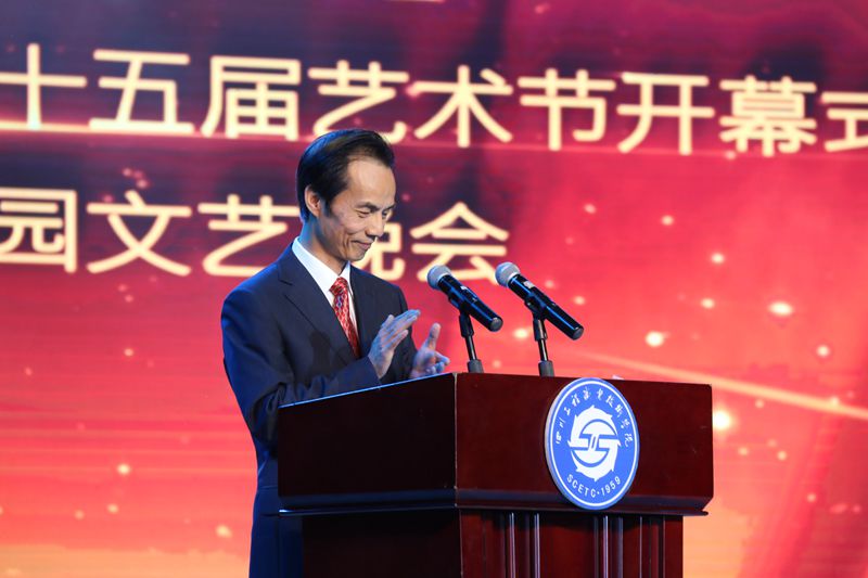 开幕式上,党委副书记、副院长杨跃致辞。杨跃副书记指出,学院长期以来充分利用校园艺术节这一重要载体,为学生搭建欣赏高雅艺术、学习各民族优秀文化的舞台,落实立德树人根本任务、培育和践行社会主义核心价值观。今天的晚会,就是要让广大青年学生在绚丽多彩的民族文化中增强对中华优秀传统文化的认同感、自豪感和自信心,用伟大的长征精神激励全校师生为实现中华民族伟大复兴的中国梦而努力奋斗。