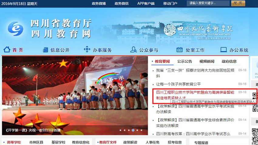 四川省教育厅网站“教育要闻”栏目http://www.scedu.net/p/9/?StId=st_app_news_i_x636097843114864533