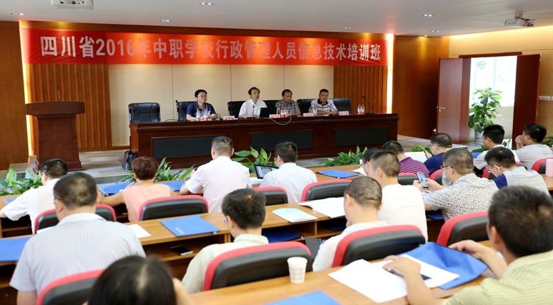 2016年7月29日上午,四川省2016年中等职业学校教师和校长省级培训项目的第一期行政管理人员信息技术培训班在学院育成中心报告厅开班。学院党委副书记、副院长杨跃在开班典礼上代表学院致辞,电气信息工程系主任向守兵、副主任杨震出席开班典礼,培训中心主任尹昌荣主持开班典礼。