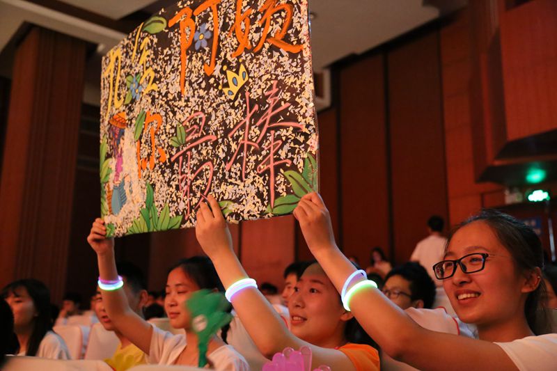 宿管老师们和同学朝夕相对,最能从一点一滴去影响彼此。宿管阿姨、叔叔们平日里付出的关心、耐心,最后都收获了学生的支持、鼓励。“13舍阿姨最可爱”、“阿姨,阿姨,我爱你”,现场缤纷的横幅和此起彼伏的“告白声”让比赛俨然成为了明星见面会。