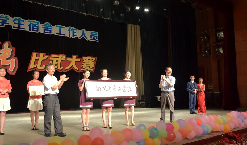 党委副书记、副院长杨跃,纪委书记郑辅春等学校领导为获得大赛一等奖的学生公寓5舍,获得二等奖的8舍、13舍,获得三等奖的9舍、15舍、16舍颁奖。