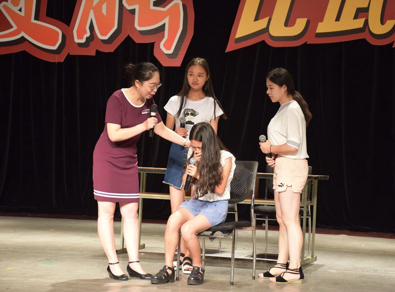 今年的技能比武大赛在传统项目外,还新增了“情景在线”测试。6个进入决赛的宿舍队伍现场抽签后,进入情景处理未知的突发情况,暴力冲突、电器违规、醉酒晕倒、突发火灾······各种急难险重的任务在舞台上被聚焦,3分钟的处置时间内却能展示出日常积累的工作经验和技巧。当得知一女生失恋痛哭不止后,阿姨用“我若盛开,蝴蝶自来”的小故事安抚对方,赢得了现场掌声。