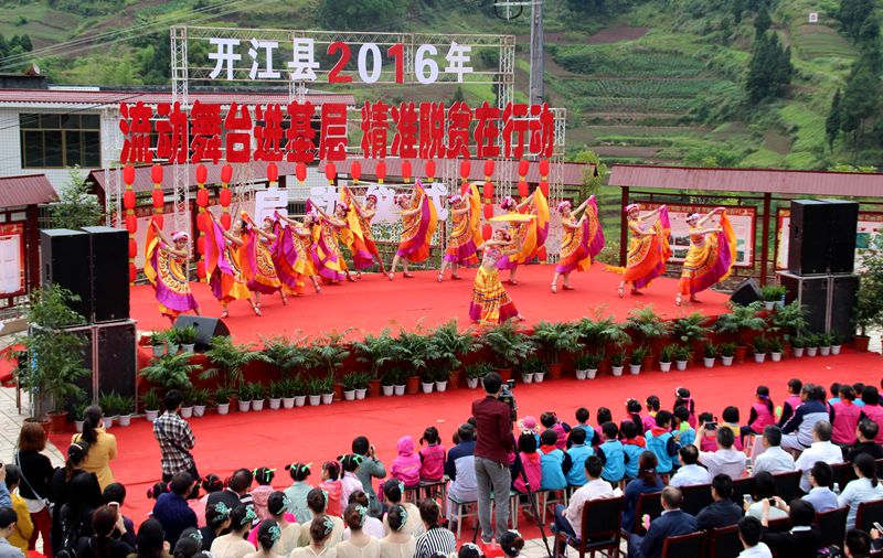 5月20日 ,按照院党委安排,我院艺术团一行13人前往达州市开江县宝石乡程家沟村,参加由省经信委组织的2016年“流动舞台进基层·精准扶贫在行动”启动仪式文化惠民演出。省经信委副巡视员鲁平成、省经信委教育培训处副处长张军以及开江县相关领导等出席了此次启动仪式,并观看表演。