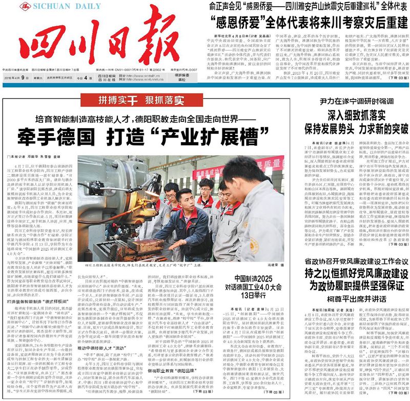 四川工业科技学院党委书记、校长唐健禾也在为“中德合作”忙碌着。学院正抓紧与德国柏林职业教育集团联手打造中德汽车学院。4月13日,学院作为主会场将迎来“中国制造2025对话德国工业4.0大会”。