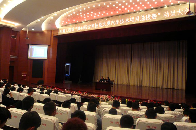 2016年3月17日下午,车辆工程系在二教演讲厅召开“第44届世界技能大赛汽车技术项目选拔赛”动员大会,动员会由车辆系党总支书记李莉勤主持,车辆系主任肖健作动员,400余名车辆工程系师生参加了大会。