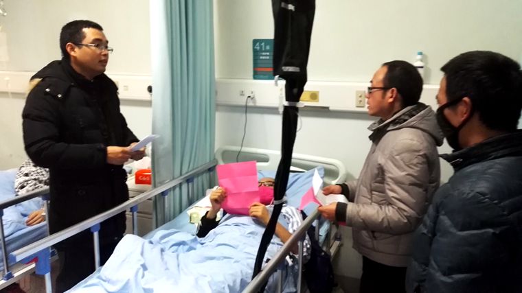 广东校友会委托范贵良校友专程赴华西医院看望慰问马超同学并转交慰问金