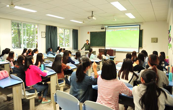 9月29日上午10点,2014级学前教育二班的学生陆陆续续来到1-212教室,准备开始他们的《毛泽东思想和中国特色社会主义理论体系概论》课程。此时,多媒体操作台前已簇拥着一群同学,有人指着电脑屏幕说到:“文老师,看看CCTV-5呢。”······一个小时后,在3-B312教室,处于《口才与写作》课休息时间的同学们,兴致勃勃地注视着投影屏幕上浙江卫视的选秀节目,任课的张老师打趣地说:“同学们,这是休息也是练习,待会我要请同学们找出这两个battle学员态势语的特点哦。”