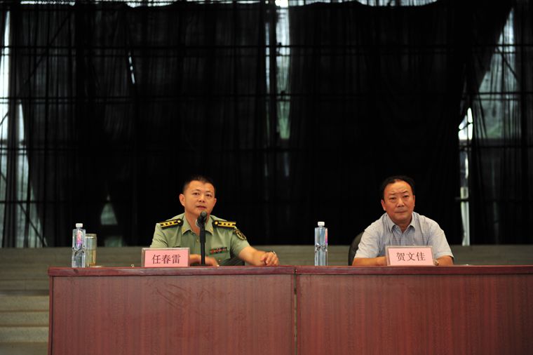 广汉人民武装部部长任春雷上校主讲 贺文佳副院长主持讲座