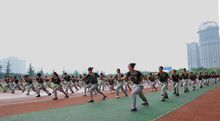 上午9:00,2015级学生军训总结大会在庄严的国歌声中拉开序幕。在激昂的解放军进行曲中,司徒渝书记在部队首长的陪同下步入操场检阅军训学生。每走到一个方队前面,司徒书记都向同学们亲切问好,表达了学院领导对同学们军训期间吃苦耐劳、顽强拚搏的充分肯定,接受检阅的同学们精神饱满、斗志昂扬。阅兵式后是分列式表演,参训新生分成了57个方阵,依次经过主席台接受院领导、部队领导及师生的检阅。分列式后举行了队列、军体拳、匕首操、手语等表演。