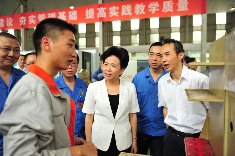 在数控生产性实训基地,黄彦蓉副省长详细询问了学校高技能人才培养的具体情况,学院党委书记司徒渝介绍了学校技术技能本科人才培养的开展情况。黄彦蓉副省长称赞学校办学条件很好,结合生产、工艺技术研究培养学生的技术技能的模式很有特色,要继续按照这种模式培养应用技术人才。