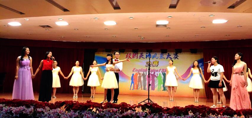 6月17日晚7:30,学院第五届校园英语风采大赛总决赛在图书馆三楼演讲厅精彩呈现,来自旅游系的邓亭、罗丽莎同学一曲吉他伴唱 “Safe and Sound”,摘得桂冠。第五届校园英语风采大赛,分歌舞、戏曲、演讲、英语配音等多种赛项。经过层层选拔,全校共16个节目入围决赛。决赛场上,选手们青春洋溢,热情激昂,精彩绝伦的才艺展示,流利娴熟的口语表达,得体大方的舞台表演,展现出同学们青春昂扬的一面。学院英语风采大赛是外语系主办的面向全院同学的大型英语技能比赛,赛事自2010年举办以来,已历5届,比赛本着“培养兴趣、增强信心、展示风采、树立榜样”的原则,为所有爱好英语的同学提供了一个锻炼技能、展示自我的平台,受到同学们的欢迎。(文图/外语系)