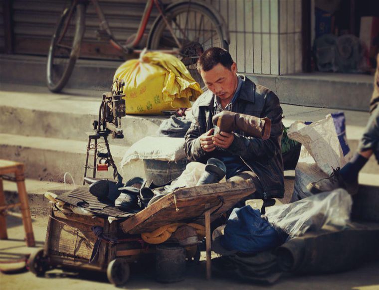 “心灵之约”摄影展一等奖作品包括2014级艺术系曾永芳的《平凡的鞋匠》等