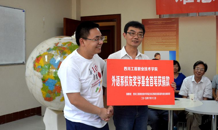李登万院长作为学院校友会会长首先致词。他向校友们详细介绍了学院发展的总体情况并代表学院对外语学子眷恋母校、不忘师恩的深情和他们捐资助学的善举表示了充分肯定。同时勉励全体外语学子努力进取,开拓创新以感恩之心回报社会,以工作业绩,奉献社会。活动中,学院纪委书记及校友会副会长郑辅春、建筑工程系主任吴建文(时任基础部主任)代表学校接受了校友们捐赠的礼物。借此契机,外语系设立了“校友奖学基金”并得到首届校友的首笔捐赠款。
