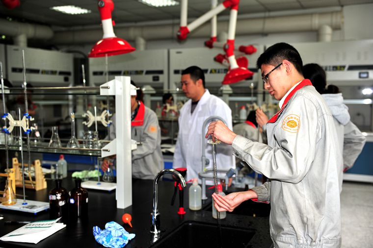 学生正在新落成的检验检测中心做检测实验