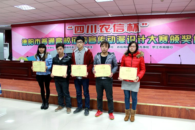 为在德阳市倡导高校信用文化建设,增强青年学生诚信意识,激发年轻学子才艺创作热情,由共青团德阳市委、中国人民银行德阳市中心支行举办的“四川农信杯”德阳市普通高校征信动漫宣传设计大赛在2014年12月12日圆满落幕。本次活动评委由5人组成,团市委、人行德阳中支、省信用联社德阳办事处各1人,动漫设计专业老师2人。经评审,共有13件作品获奖。