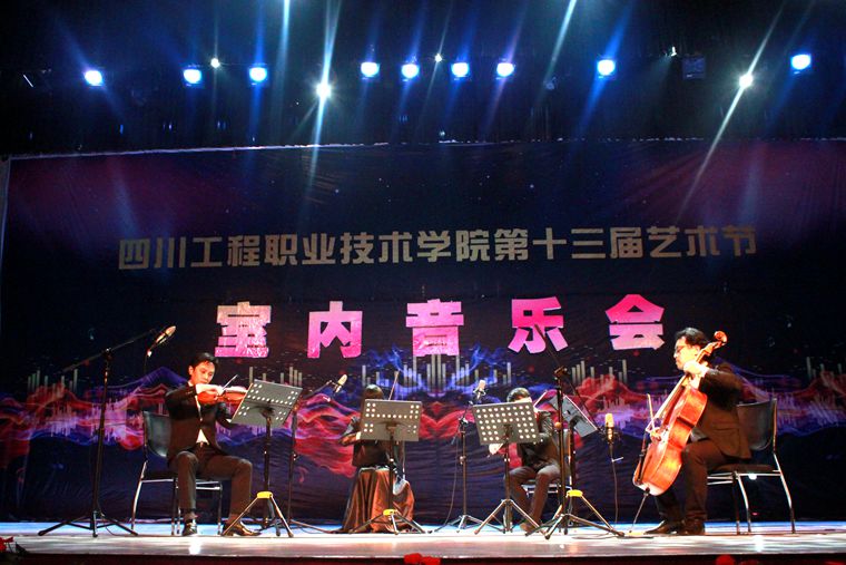 2014年11月25日19:点30分,由学院团委承办的第十三届艺术节——“室内音乐会”在二教演艺厅举行。来自四川交响乐团、四川爱乐乐团、四川音乐学院、德阳市的演奏家们给到场嘉宾带来了一场听觉的盛宴,到场师生漫步在经典音乐中,共享这高雅艺术之夜。