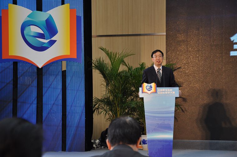 鲁部长在讲话中指出,全国职业院校信息化教学大赛是推动我国职业教育事业科学发展的一项重要制度设计。自2010年举办首届比赛以来,大赛逐年完善、不断创新,由最初的中职赛事发展为一年一度、中高职全面覆盖的职教盛会,在职教战线形成了“学生有技能大赛,教师有信息化教学大赛”的可喜局面,推动了职业教育信息化发展,形成了较为完备的竞赛组织体系,突出了为教育教学服务的办赛宗旨,培育了一支坚强有力的职教信息化教学队伍,建设了一大批信息化教学资源。她强调,中国经济进入新常态阶段,中央对加快发展现代职业教育做出了一系列重大部署。加快推进职业教育信息化,是建设现代职业教育体系的重要保障,是职业教育基础能力建设的重要任务,是支撑职业教育改革创新的重要基础,是提高技术技能人才培养质量的关键环节。今后一个时期,要贯彻落实中央决策部署,按照制度化、规范化、常态化的要求,以全国职业院校信息化教学大赛为抓手,推进职业教育信息化教学工作,努力提升人才培养质量:一是坚持育人为本,服务技术技能人才培养;二是坚持学生中心,创新教学模式;三是坚持教师主体,提高信息化教学能力;四是坚持应用驱动,探索优质数字资源开发与应用机制;五是坚持科研先行,做好课题研究;六是坚持服务教学,办好全国职业院校信息化教学大赛。