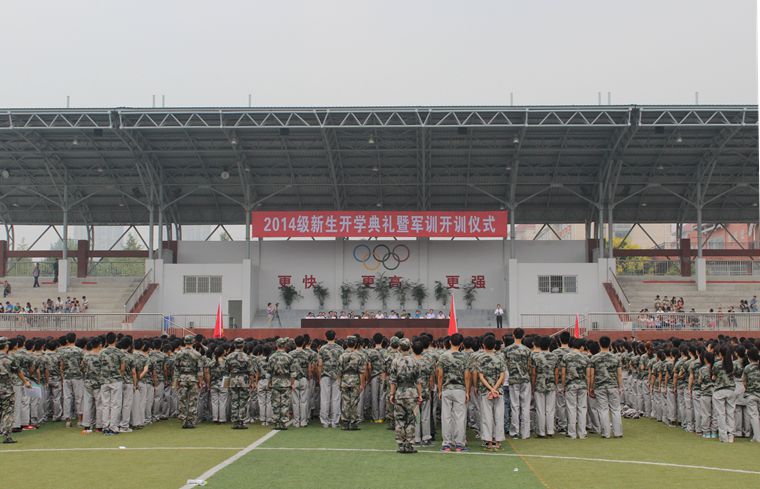 2014级新生开学典礼暨军训开训仪式在田径运动场举行