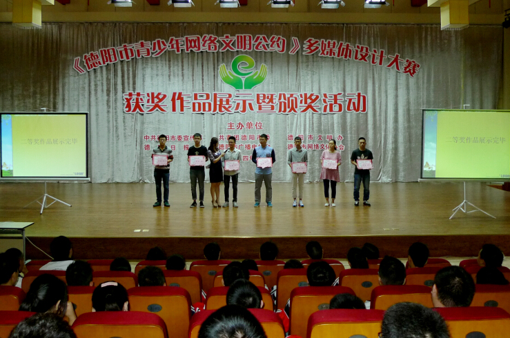 近日,由中共德阳市委宣传部、共青团德阳市委、德阳市文明办、德阳日报社、德阳市广播电视台和德阳市网络文化协会联合举办的《德阳市青少年网络文明公约》多媒体设计大赛落下帷幕。本赛历时半年,通过网络征集,共收到全市青少年自主设计的作品149件,共评选出一等奖作品4件,二等奖作品8件,三等奖作品12件。