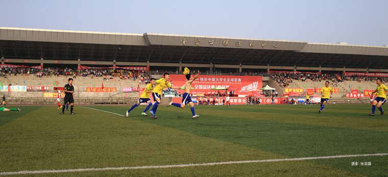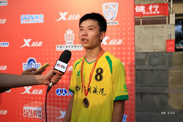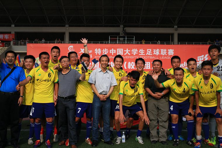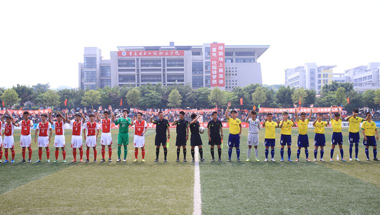 本届决赛,我院再次对战香港城市大学 重庆校友会现场助威 下半场第34分朱时令打破僵局,并将1:0的比分保持到终场 我院一路过关斩将成功蝉联大足赛冠军 球员朱时令接受CCTV采访 蒲宏万获“最佳教练” 学院党政领导与球员合影留念 5月31日,在重庆电子工程职业学院举行的全国大学生足球联赛校园组冠军争夺战中,我院男足以1:0战胜香港城市大学,从而蝉联全国大足赛校园组冠军。8号球员朱时令在下半场进行到第34分钟打破僵局取得领先,并将比分保持到终场结束。 宣传部 编辑 张启国 摄影