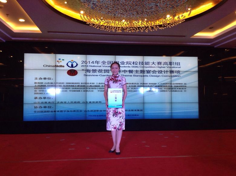 2014年全国高职院校技能大赛中餐主题宴会设计大赛于6月13日-17日在山东旅游职院举行,来自全国28个省级代表队的82名选手参加了比赛。代表四川省参加此次全国技能大赛的我院旅游管理系陈石同学在老师的精心指导下,刻苦训练,沉着应战,经过理论知识测试、英语口试、主题创意设计、中心艺术品制作、现场操作、职业形象展示及选手作品现场互评等七个环节的激烈角逐,其参赛作品《咏梅会》在比赛中脱颖而出,获得大赛二等奖的好成绩。 旅游管理系 蒋敬 供稿 党委宣传部 编辑