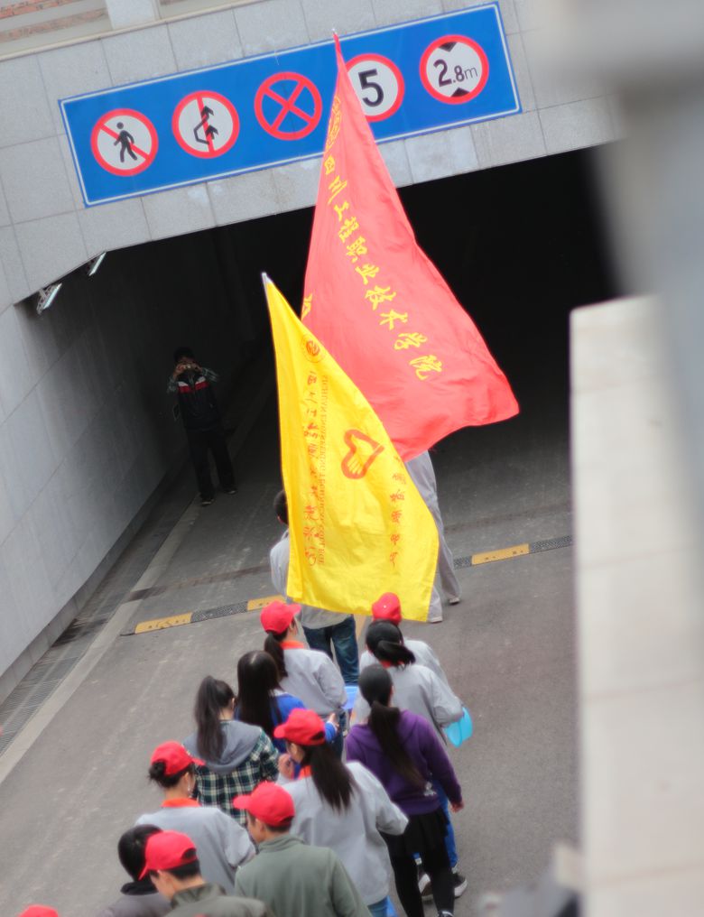 穿过下穿隧道,“植树小分队”有序向南区进发!