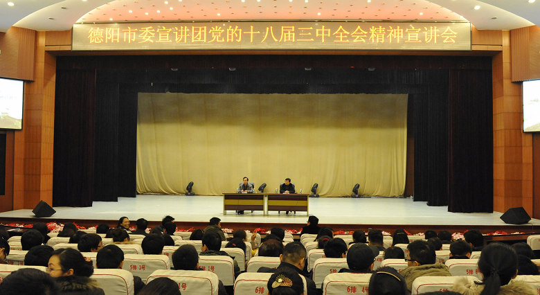 12月24日下午,德阳市委宣讲团成员,德阳广播电视大学副校长杨隆高来我院专题宣讲十八届三中全会精神。报告会的主题是“在新的历史起点上,全面深化改革的行动纲领”。宣讲报告会在我校演播大厅举行,校党委副书记、副院长杨跃主持报告会。
