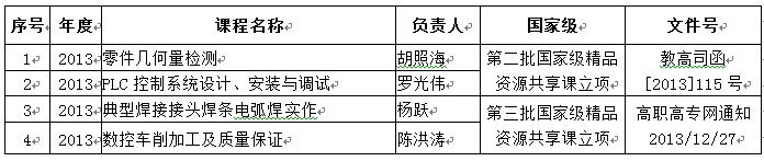 12月27日,学校2门课程入选教育部公布的第三批国家级精品资源共享课立项项目名单。2013年,学院启动了国家级精品资源共享课建设工作。经学校申报、专家审核,全省共遴选出69门课程推荐申报国家级精品资源共享课。我校申报的《典型焊接接头焊条电弧焊实作》(课程负责人:杨跃教授)和《数控车削加工及质量保证》(课程负责人:陈洪涛教授)2门课程成功入选第三批国家级精品资源共享课立项项目。