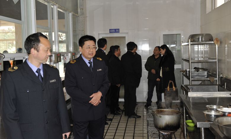 12月5日下午,省、市食品药品监督管理局领导一行10余人莅临我院,检查食堂食品安全工作及开展食品安全社会监督工作的情况。检查组在学院副院长倪波的陪同下,深入食堂对设施设备和加工流程,以及采购、索证、消毒、留样、专间、台账、晨检等涉及食品安全的重点环节进行了细致检查,并查阅了相关的资料记录。检查组对我院开展食品安全社会监督试点情况进行了详细地了解和询问,副院长倪波对应检查组提出的问题进行了汇报和介绍。交换意见时,检查组对我院食堂的管理理念、管理规范、制度建设、运行监督、现实状况等给予了充分肯定,省局程处长说我院食堂可以作为德阳创卫的亮点,市局唐科长接着说将把工院食堂作为全市的一个样板。