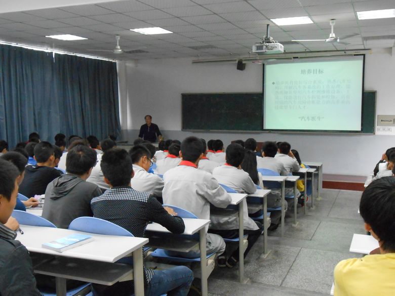 新学期伊始,车辆工程系针对2013级新生开展了丰富多样的入学教育。9月8日,学院教务处处长、机电一体化专业带头人吴先文教授,车辆工程系主持工作的副主任、汽车检测与维修技术专业带头人肖健副教授,车辆工程系副主任冯锦春教授,汽车电气教研室主任曾令全副教授,汽车检测教研室主任杨良勇副教授等对车辆工程系机电一体化、汽车检测与维修技术、汽车技术服务与营销、汽车整形技术专业全体学生进行了专业介绍,让学生对专业前景、人才培养目标、专业学习要求有了初深入的认识。随后,汽车专业的学生来到了汽车实训中心参观,机电一体化专业的学生参观了机电一体化实验室。在实验室,同学们观看各种实验设施,讨论交流。