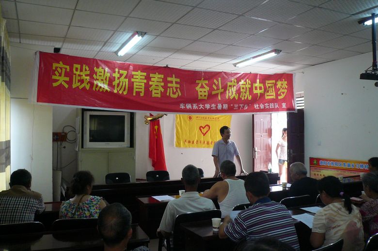 为了贯彻落实党的十八大精神和省第十次党代会精神,进一步推动农村文化、科技、卫生事业全面发展,丰富和活跃农民文化生活、满足农民群众日益增长的精神文化需求,8月25日,车辆工程系12名师生志愿者在系团总支书记明玲带领下,冒着酷暑,来到德阳市东湖乡刁桥村,认真开展“三下乡”活动。