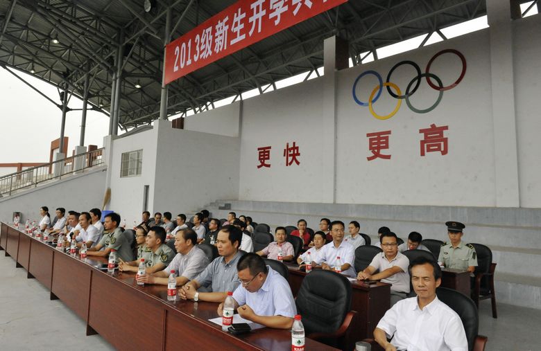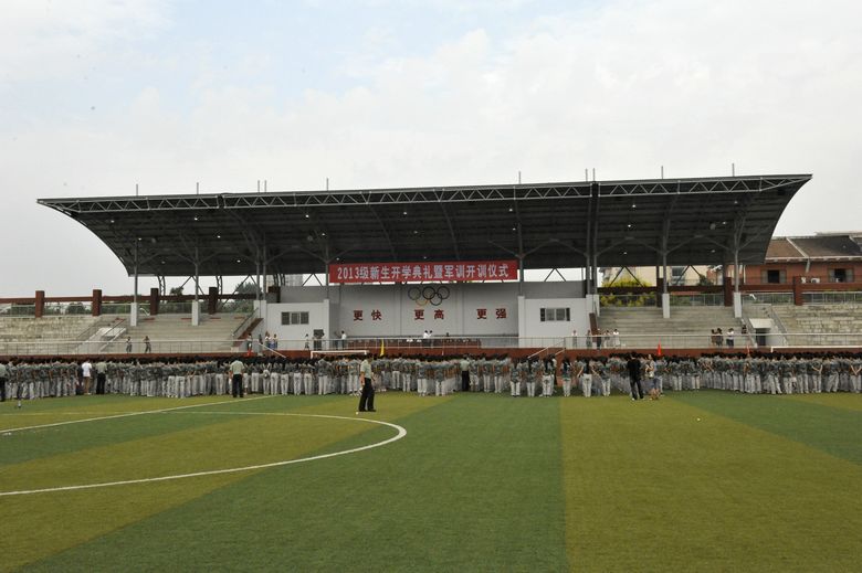 2013级新生开学典礼暨军训开训仪式在田径运动场举行