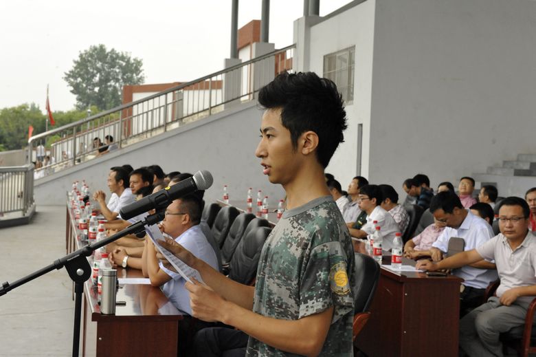 学院院长李登万同志发表了热情洋溢的讲话,向新同学表示祝贺并代表学校向他们表示热烈的欢迎,李登万院长向同学们介绍了学校的历史和建设发展情况,并向新同学提出了殷切的希望。部队首长杨极同志希望受训学生要充分认识军训的重要意义,发扬不怕苦不怕累的拼搏精神,保证做到认识到位,行动自觉,圆满完成各项军事训练任务。材料系新生方晨同学代表全体新生发言,表示要珍惜机会,认真军训,好好学习,为校争光。学院党委书记司徒渝宣布2013级新生军训开训。最后,全体新生庄严地进行了军训宣誓。