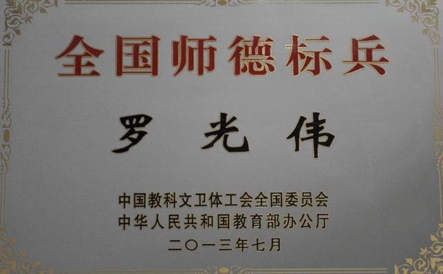 在第29个教师节前夕,我院电气工程系教师罗光伟,荣获由中国教科文卫体工会全国委员会和教育部办公厅颁发的“全国师德标兵”荣誉称号。 罗光伟老师献身教育二十余年,在教书育人的岗位上默默耕耘,勤奋工作,关爱学生,倾情投入学科和课程建设,注重提升学生的德行,帮助学生全面发展、成人成才,用赤诚、爱心和执着诠释着“教师”这一岗位的光荣使命。