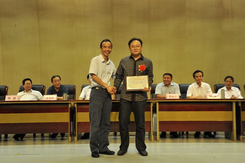 党委书记司徒渝向获得“全国师德标兵”荣誉称号的罗光伟老师颁奖